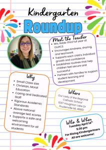 Tuesday, April 14th at 5:30 pm. For rising Kindergartners. All are welcome!